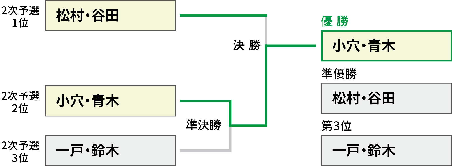 | 1 | 一戸・鈴木 | A1位 | − | ◯ 8-6 |